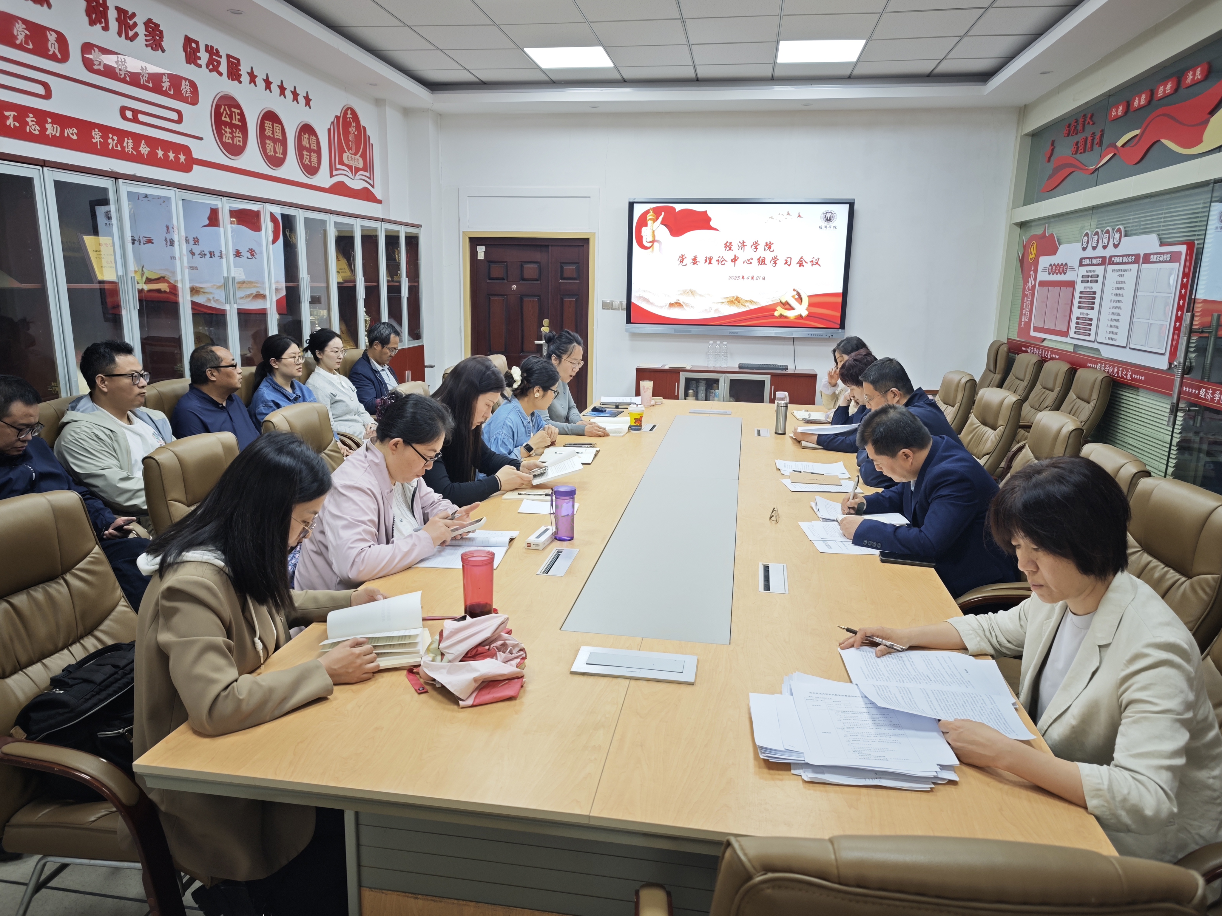 4月21日上午,澳门新葡京娱乐城 党委在关天会议室召开理论学习中心组(扩大)学习会议。全体领导班子成员、党支部书记及科级干部参加,澳门新葡京娱乐城 党委书记王森主持会议。