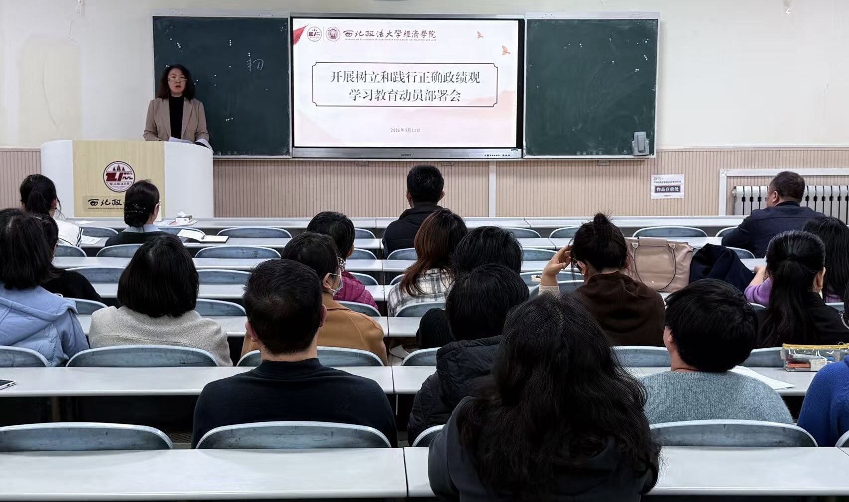 3月11日,澳门新葡京娱乐城 召开关于开展树立和践行正确政绩观学习教育动员部署会。全体班子成员及教职工参会,澳门新葡京娱乐城 党委书记李建梅主持会议。