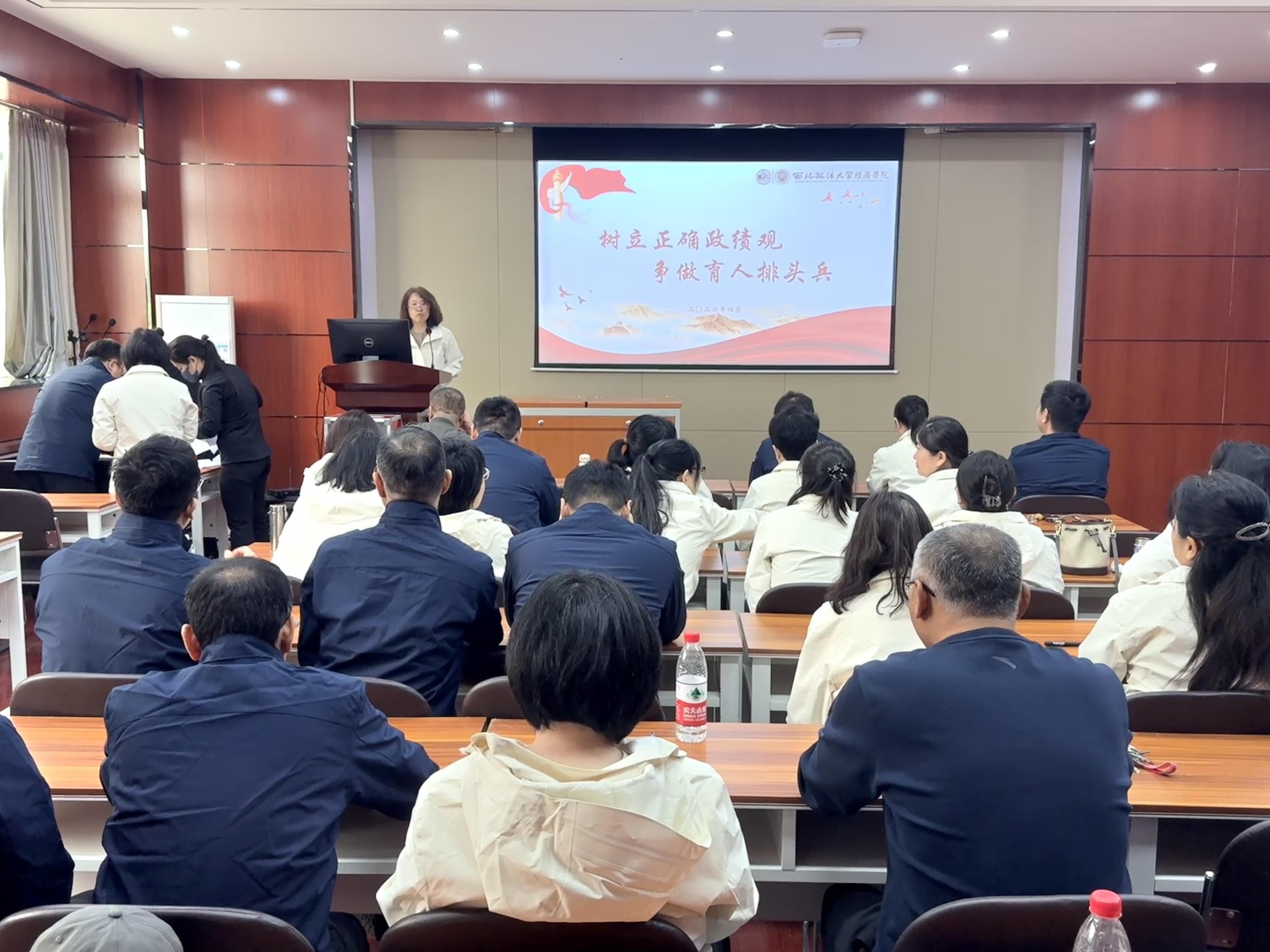 为深入推进师德师风建设,引导全院教职工树立和践行正确政绩观,4月22日上午,澳门新葡京娱乐城 党委书记李建梅以“树立正确政绩观 争做育人排头兵”为主题,在长安校区天平楼B100教室为澳门新葡京娱乐城 全体教职工讲授专题微党课(思政课)。