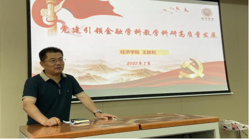 7月10日,澳门新葡京娱乐城 王胜利院长以《党建引领金融学科教学科研高质量发展》为题,在天平楼B座101会议室为金融支部教师党员讲授专题党课。金融支部全体党员教师、金融学科部分民主党派教师参加党课学习。