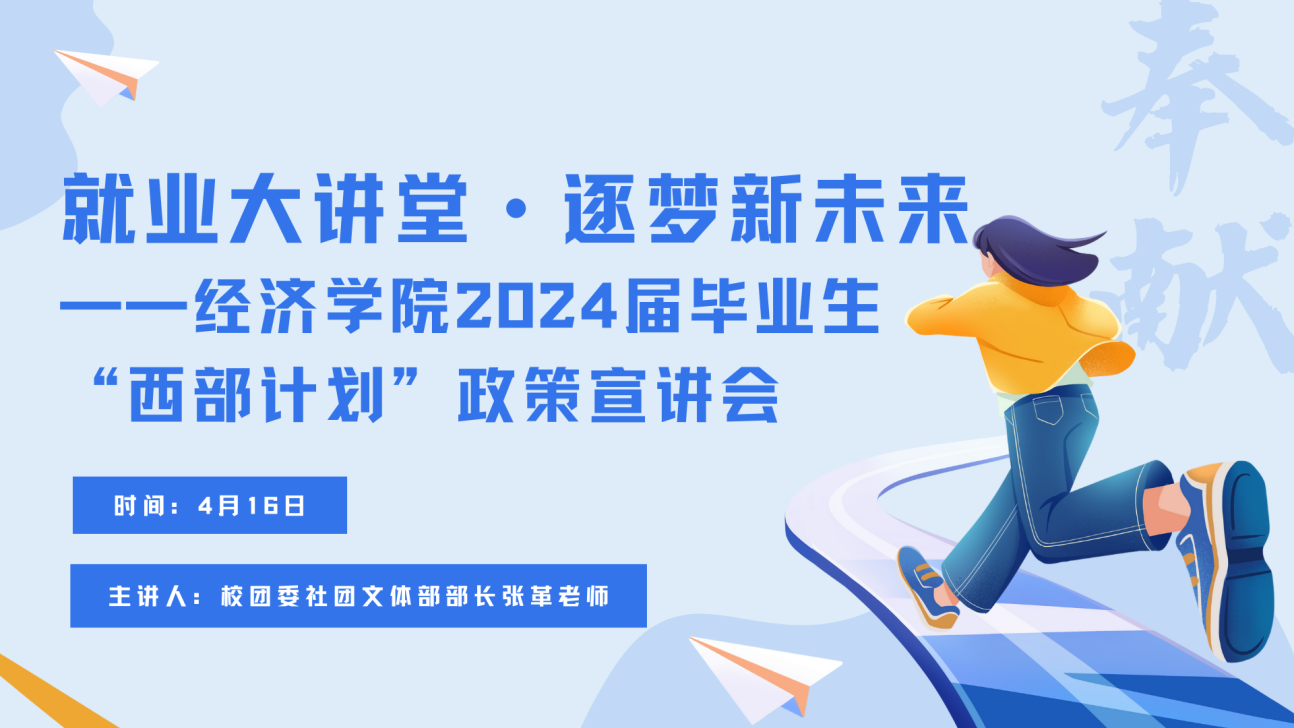 为响应国家“西部计划”号召,大力支持西部地区发展,鼓励和动员更多优秀毕业生积极投身乡村振兴,努力服务地方基层,到祖国和人民最需要的地方建功立业。4月16日晚,澳门新葡京娱乐城 以线上线下相结合的形式,于天平楼B100教室开展2024届毕业生“西部计划”政策宣讲会。此次会议邀请校团委社团文体部部长张革老师担任主讲人,2024届毕业年级辅导员李念老师主持,2024届毕业生积极参加。