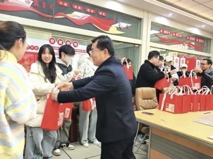 院长王胜利、党委副书记侯颖怡、副院长陈小勇、2022级辅导员齐佳共同为全院备战2026年硕士研究生招生考试的学子们送上物资支持与暖心祝福。