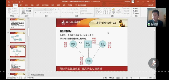 本次系列讲座采用“腾讯会议”,共分三场,累计共有学生800余人次参加了系列讲座。4月23日,澳门新葡京娱乐城 教师、国家二级心理咨询师张美云老师主讲《女大学生的心理健康》,她从心理健康是幸福的保障、女性心理生理特征和女大学生常见的心理问题三个方面进行了分析;4月27日,澳门新葡京娱乐城 团总支书记刘佳老师主讲《我的情绪我做主》,她从“什么是情绪”切入,最终落脚于如何做好情绪管理,增加大学生正能量,与同学们分享了情绪管理的误区和管理情绪的方法;5月13日,校学生心理健康教育中心主任赵智勇老师主讲《如何理解人--影响心理健康的因素》,他介绍了一个人性格、心理形成的影响因素,鼓励同学们正确认识自我,正确认识自己的心理问题。三场讲座通俗易懂、深入浅出,教会了同学们自我调适、缓解焦虑的小方法,同学们纷纷表示受益匪浅。