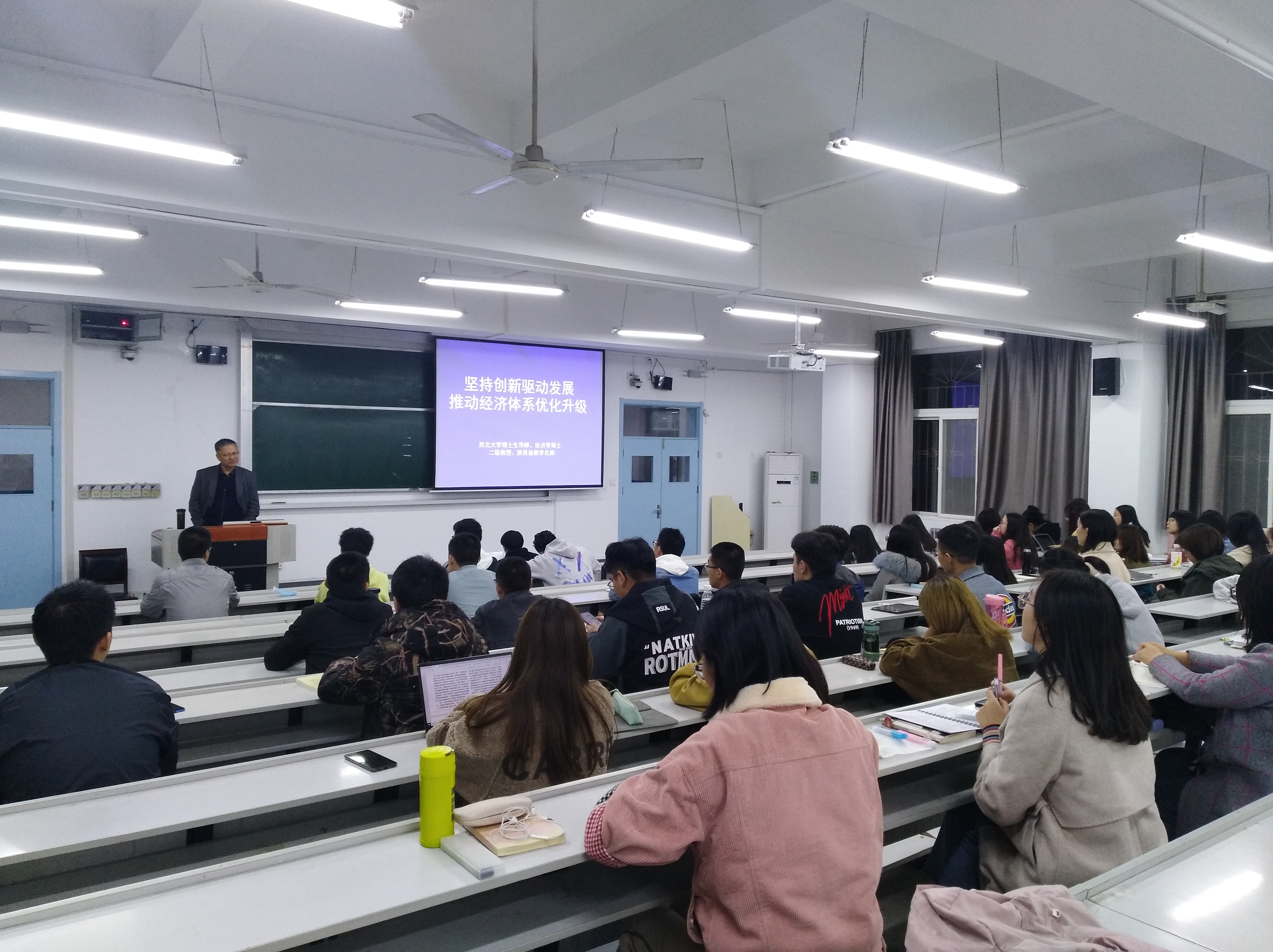 11月9日晚,西北大学博士生导师惠宁教授应邀来澳门新葡京娱乐城 作了题为“坚持创新驱动发展,推动经济体系优化升级”的学术讲座,澳门新葡京娱乐城 全体研究生参加报告会,报告由澳门新葡京娱乐城 副院长王胜利教授主持。