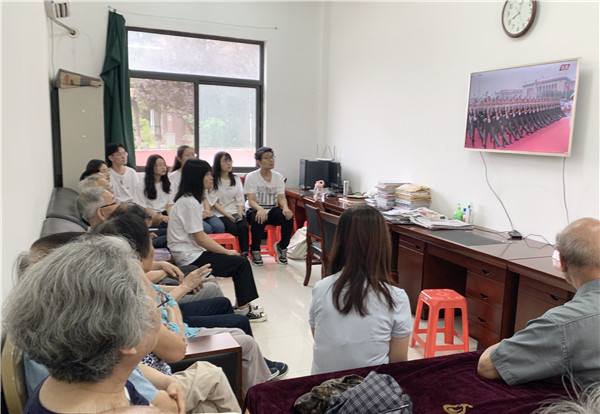 学生第一党支部与离退处第十一党支部在长安校区离退处活动室联谊,共同收看大会直播。