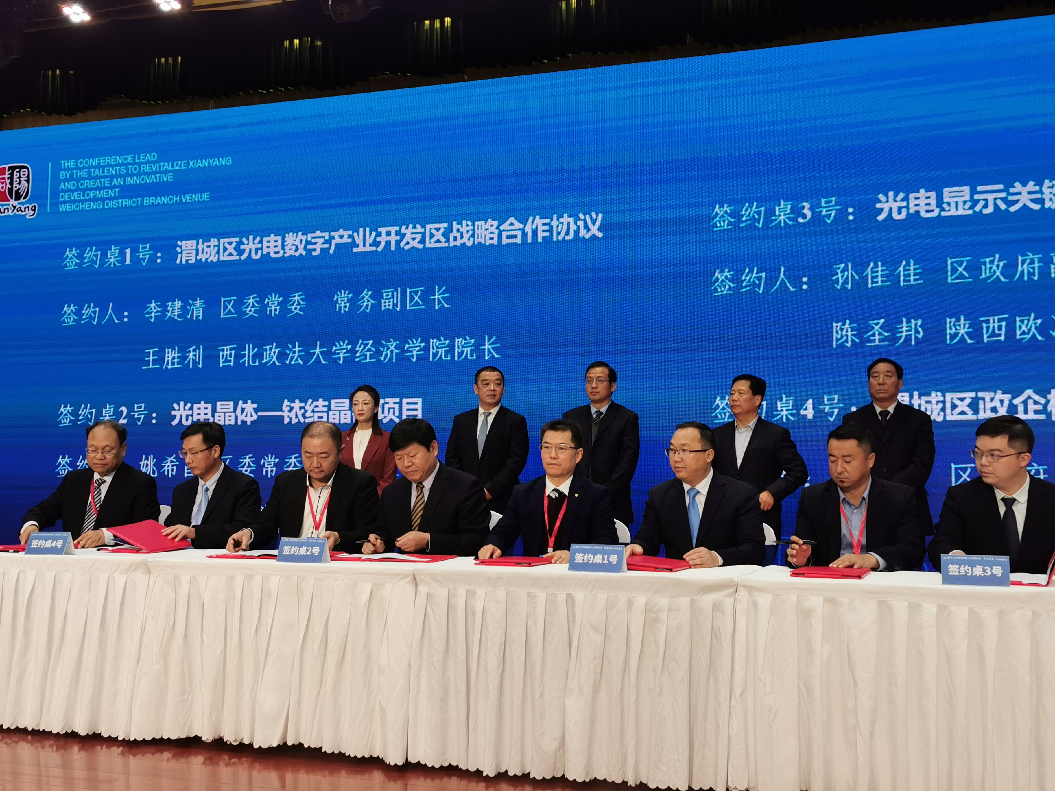 为贯彻落实习近平总书记在中央人才工作会议上的讲话精神,落实省委省政府建设秦创原创新驱动平台的重大部署,咸阳市于10月15日召开“人才兴咸、创新发展”大会。澳门新葡京娱乐城 刘光岭教授、王胜利教授受邀参加咸阳市“人才兴咸、创新发展”大会渭城区分会,王胜利院长代表澳门新葡京娱乐城 与咸阳市渭城区政府签订“渭城区光电数字产业开发区战略合作协议”。