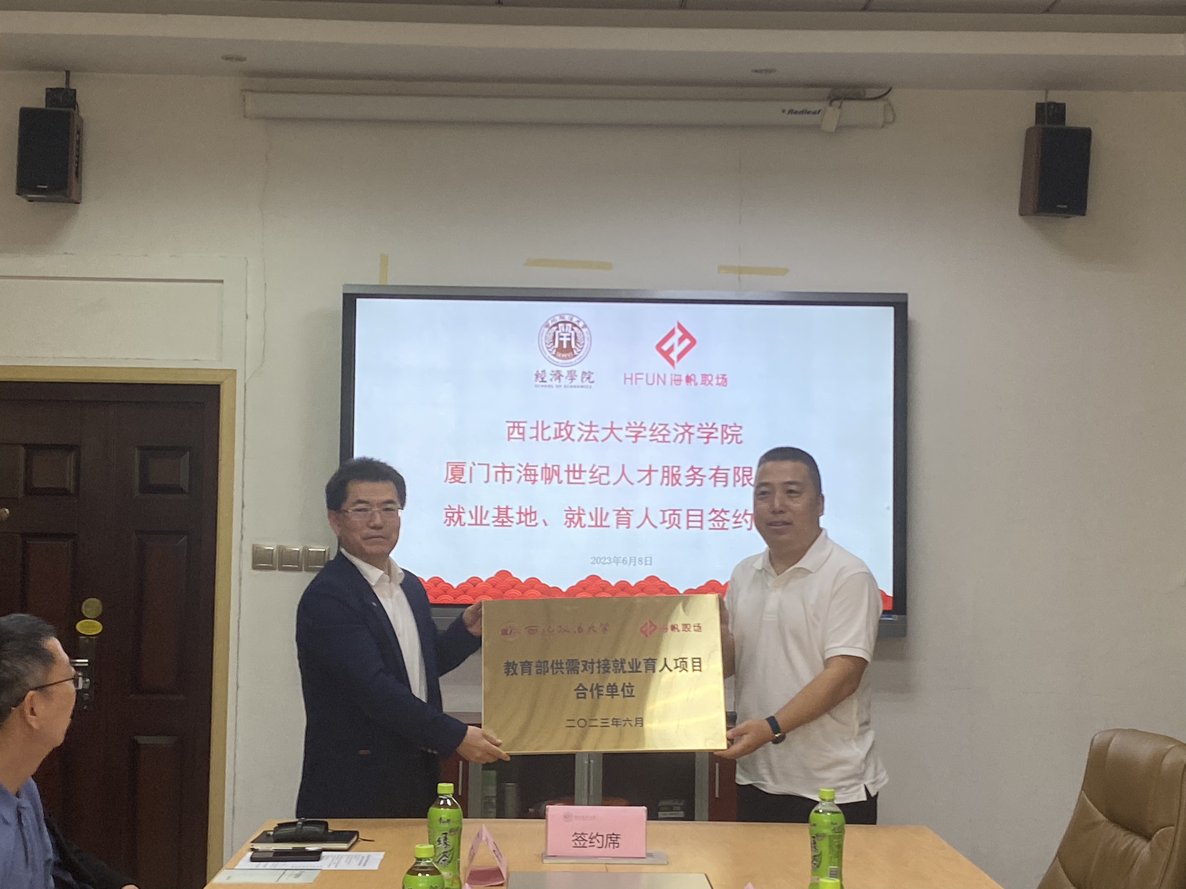 6月8日上午,澳门新葡京娱乐城 与厦门市海帆世纪人才服务有限公司在长安校区天平楼A座关天会议室举行就业基地、就业育人项目合作签约仪式。招生就业处副处长铁坤、澳门新葡京娱乐城 院长王胜利、党委副书记张文渊、副院长徐梅、副院长陈小勇,厦门市海帆世纪人才服务有限公司总经理兼教育部全国普通高校毕业生就业创业指导委员会委员夏希东、中侨国际文化有限公司总经理巨大理、凤凰网陕西频道政企事业部总监石世增、陕西绿洲保险代理有限公司培训部总经理潘黎等出席仪式,澳门新葡京娱乐城 近50名师生参加。签约仪式由王胜利主持。