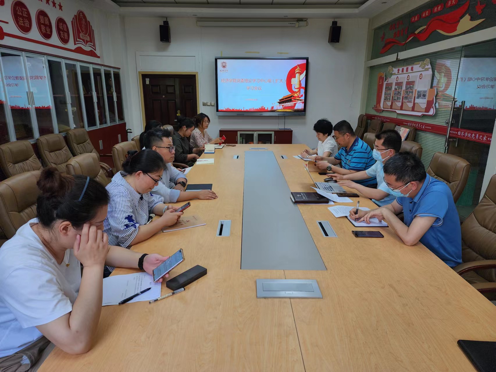 6月13日上午,澳门新葡京娱乐城 党委在长安校区关天会议室召开理论学习中心组(扩大)学习会议,澳门新葡京娱乐城 班子成员、党支部书记、科级以上干部参会,会议由党委书记王森主持。