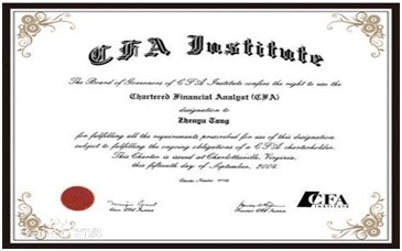 CFA证书,中文名称为“特许金融分析师”(Chartered Financial Analyst,简称CFA),是由国际投资管理与研究协会于1963年开始设立的特许金融分析师职业资格认证。是世界上规模最大的职业考试之一,是当今世界证券投资与管理界普遍认可的一种职业称号。2006年,《金融时报》杂志将CFA专业资格比喻成投资专才的“黄金标准”。是人民网发布的十大含金量最高的资格证书之一。