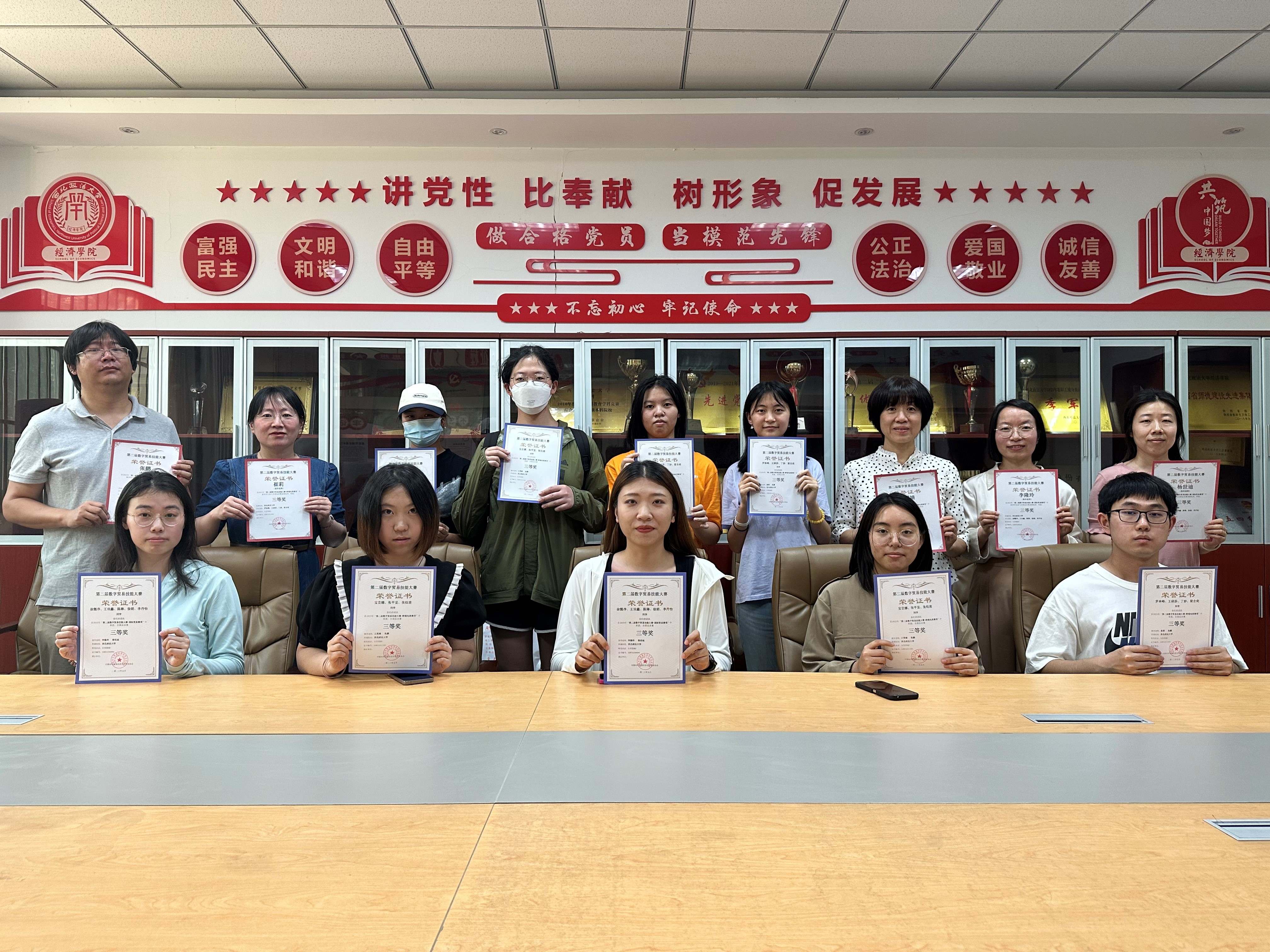 经过十天的激烈比赛,由王雯婧、张鹏等老师指导的3支队伍分别荣获国际贸易赛三等奖1项和跨境电商赛三等奖2项。国际商务专业硕士组队的“钱多多队”荣获国际贸易赛三等奖,澳门新葡京娱乐城 2022级学生组队的“春日部防卫队”和“海底小纵队123”荣获跨境电商赛三等奖。5月31日主办方公布了大赛获奖结果,6月14日下午澳门新葡京娱乐城 为获奖师生颁发了荣誉证书。