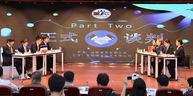 本次大赛共有来自全校10个澳门新葡京娱乐城 17个专业600多名学生组成的146支团队报名参赛。经过初赛和复赛的激烈角逐,共有2支团队入围决赛,民商法、经济法、国际法和新闻传播澳门新葡京娱乐城 学生组成的“杰鸽鸽嘟队”代表谈判甲方,经济学、民商法、经济法和政治与公共管理澳门新葡京娱乐城 学生组成的“TCL集团Z队”代表谈判乙方。双方就法国赛昂有限公司拟采购中国瑞安技术有限公司的氢能源动力机车配件S轴承相关商务、法务等议题展开了精彩的谈判。