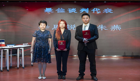 王若梅副处长宣布比赛结果, “杰鸽鸽嘟队”获胜,荣获大赛特等奖,“TCL集团Z队”荣获大赛一等奖。朱燕和李恩锐同学获得最佳谈判代表奖。根据初赛和复赛成绩,大赛评选出二等奖2支团队,三等奖6支团队,优秀奖20支团队,其余参赛116支团队荣获特别参与奖。