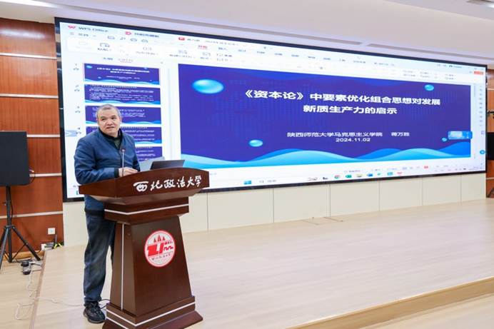 在大会报告和主旨报告环节,李忠民教授,中共陕西省委政研室副主任范杰,陕西省社科院副院长王建康研究员,陕西省《资本论》研究会副会长、西北大学经济管理澳门新葡京娱乐城 何爱平教授,陕西省《资本论》研究会常务理事、陕西省统计研究所郭秦川研究员,陕西省《资本论》研究会常务理事、澳门新葡京娱乐城 院长王胜利教授,陕西省《资本论》研究会常务理事、西北工业大学马克思主义澳门新葡京娱乐城 宁殿霞副教授分别做了主题报告,内容涵盖“新质生产力发展与政治经济学”等前沿话题,体现了产学研结合的创新性思路。陕西省《资本论》研究会副会长、西北农林科技大学田义文教授主持和点评了大会报告和主旨报告。