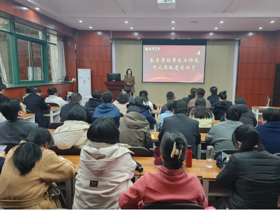澳门新葡京娱乐城 党委副书记侯颖怡就学生工作进行安排并开展党风廉政建设动员。在学生工作方面,强调要完善制度建设,营造优良学风环境;创新服务育人模式,提升学生工作实效;深化本科生导师制,构建“三全育人”新格局。