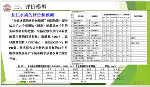 随后,吴静杰老师针对评价模型及多属性决策模型,从构成要素、数据处理到综合评价数学模型的种类进行了详细讲解,重点介绍了线性加权综合评价、动态加权综合评价、TOPSIS方法,讲解了确权的AHP方法和熵权法,并以赛题“长江水质的评价和预测”为例,阐述了如何运用模型得出评价结果。