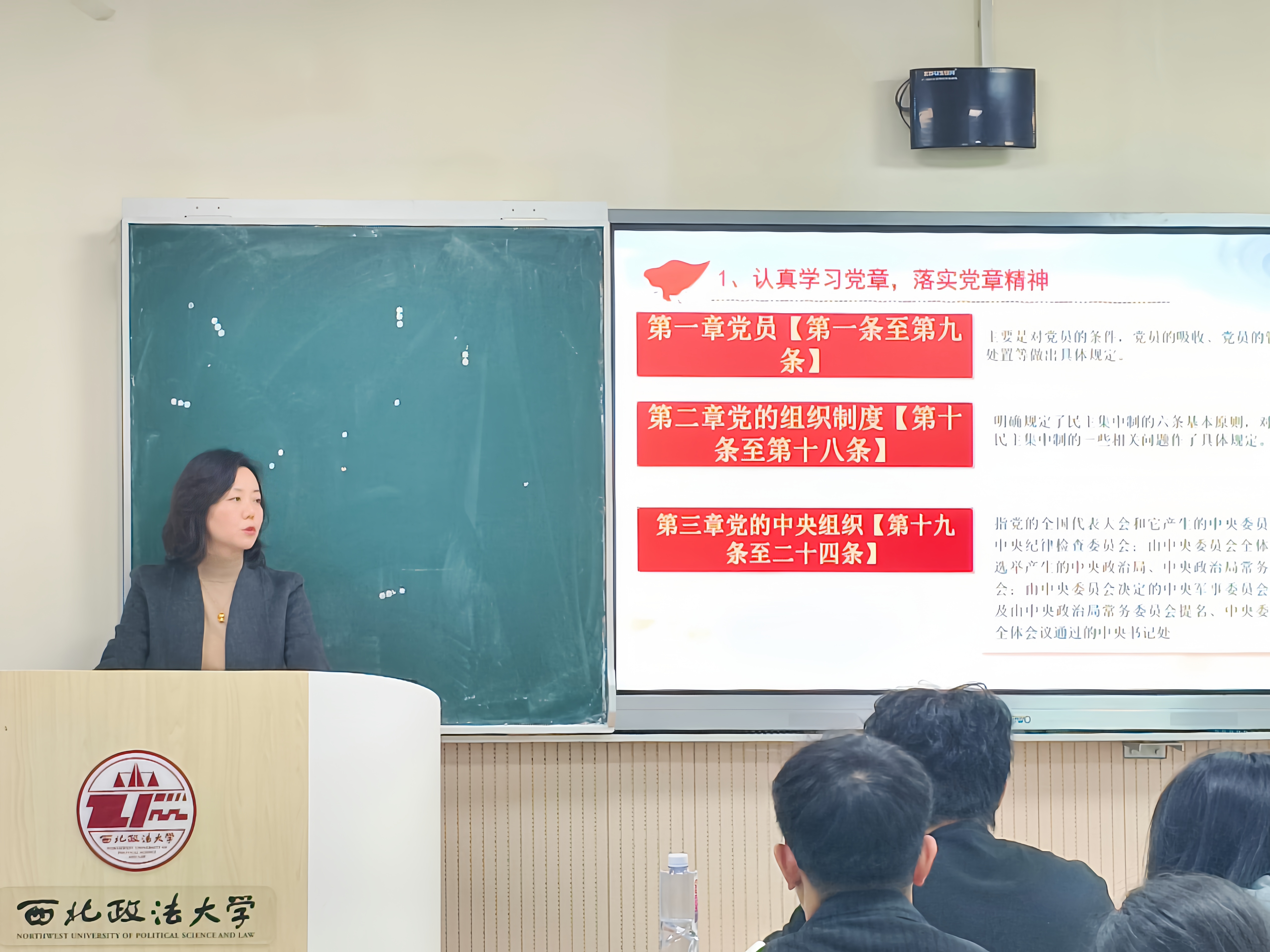 侯颖怡老师以《学党章强思想,做合格共产党员》为主题,结合生动案例,带领大家学习入党誓词,深入浅出地讲解了做合格党员的要求。她强调,要把学习党章作为终身必修课,精准把握核心要义与实践要求,真正做到学深悟透、入脑入心;其次,要锤炼党性修养,胸怀 “国之大者”,清晰知晓党员的义务与权利,自觉用党章规范言行举止;最后,要凝聚青春力量,以合格共产党员的标准严格要求自己,始终保持不懈奋斗的昂扬姿态、锤炼忠诚干净担当的政治品格,把个人理想追求融入党和人民的事业,争做有理想、敢担当、肯吃苦、明大德的时代新人,以实际行动践行初心使命。