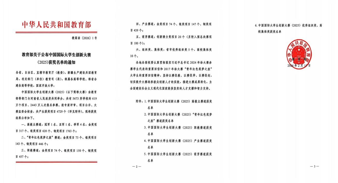 近日,教育部公布了中国国际大学生创新大赛(2025)获奖名单,澳门新葡京娱乐城