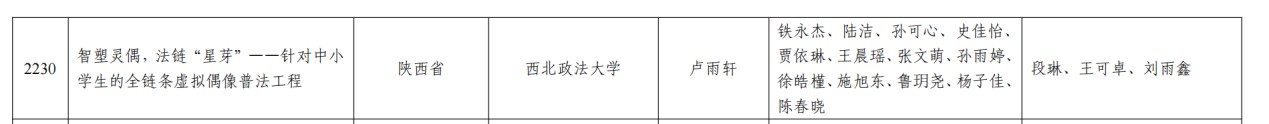 创新创业孵化与教育研究院主任、国际经济与贸易系段琳老师(第一指导教师)指导的学生项目“智塑灵偶,法链‘星芽'——针对中小学生的全链条虚拟偶像普法工程”荣获本届国赛主赛道铜奖。