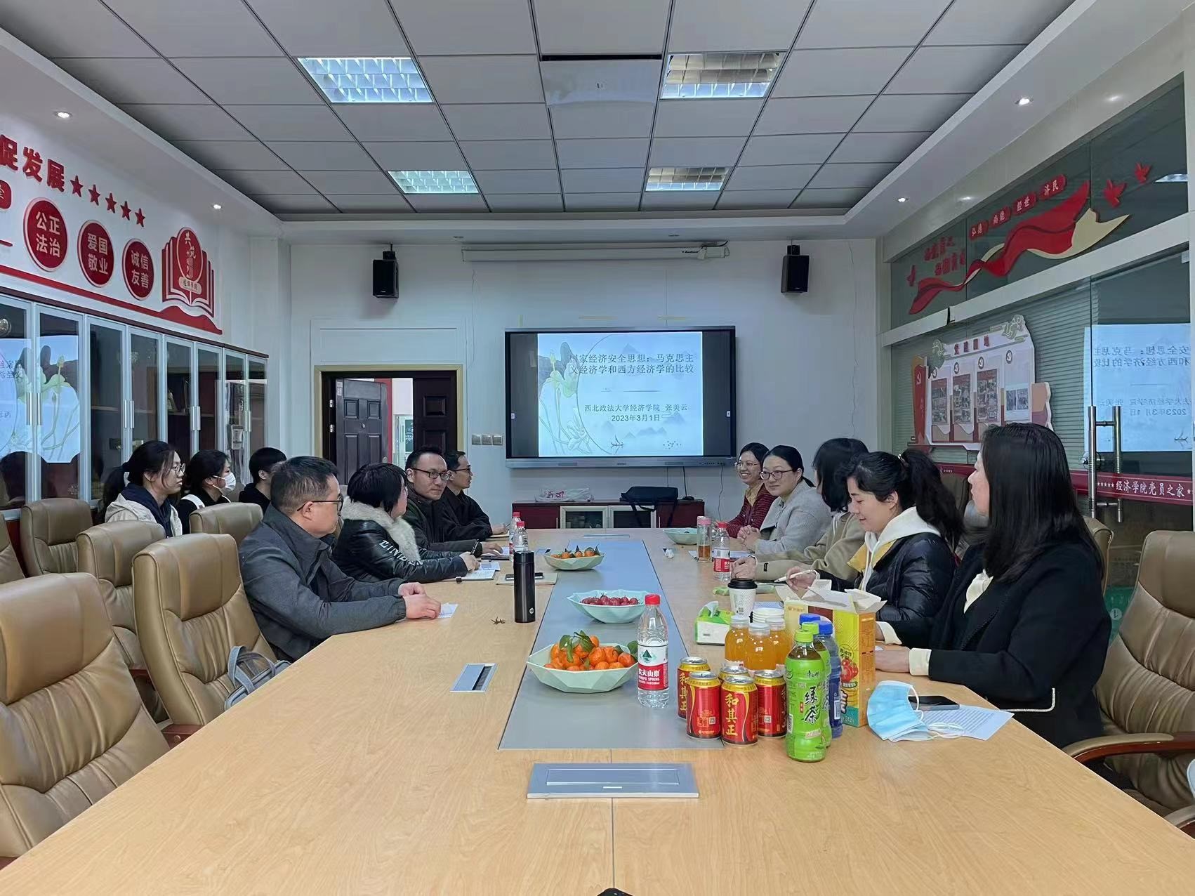 2023年3月1日中午12:00-14:30,澳门新葡京娱乐城 主办的系列学术研讨会2023年第1期在长安校区关天澳门新葡京娱乐城 研究中心顺利举行。国际经济与贸易系副教授张美云作题为《习近平总书记关于国家经济安全重要论述研究》的学术报告。讲座由澳门新葡京娱乐城 副院长陈小勇教授主持,刘运转副教授、嵇正龙副教授、王留鑫副教授、李蔚博士、梁娟娟博士、刘东霞博士、王林博士、孙陵霞博士、徐建卫博士、张妤婕博士等与谈。研讨会筹备和举办期间还得到了西北大学经管澳门新葡京娱乐城 宋宇教授、华侨大学经济与金融澳门新葡京娱乐城 郭丽教授等前辈的指导和支持。