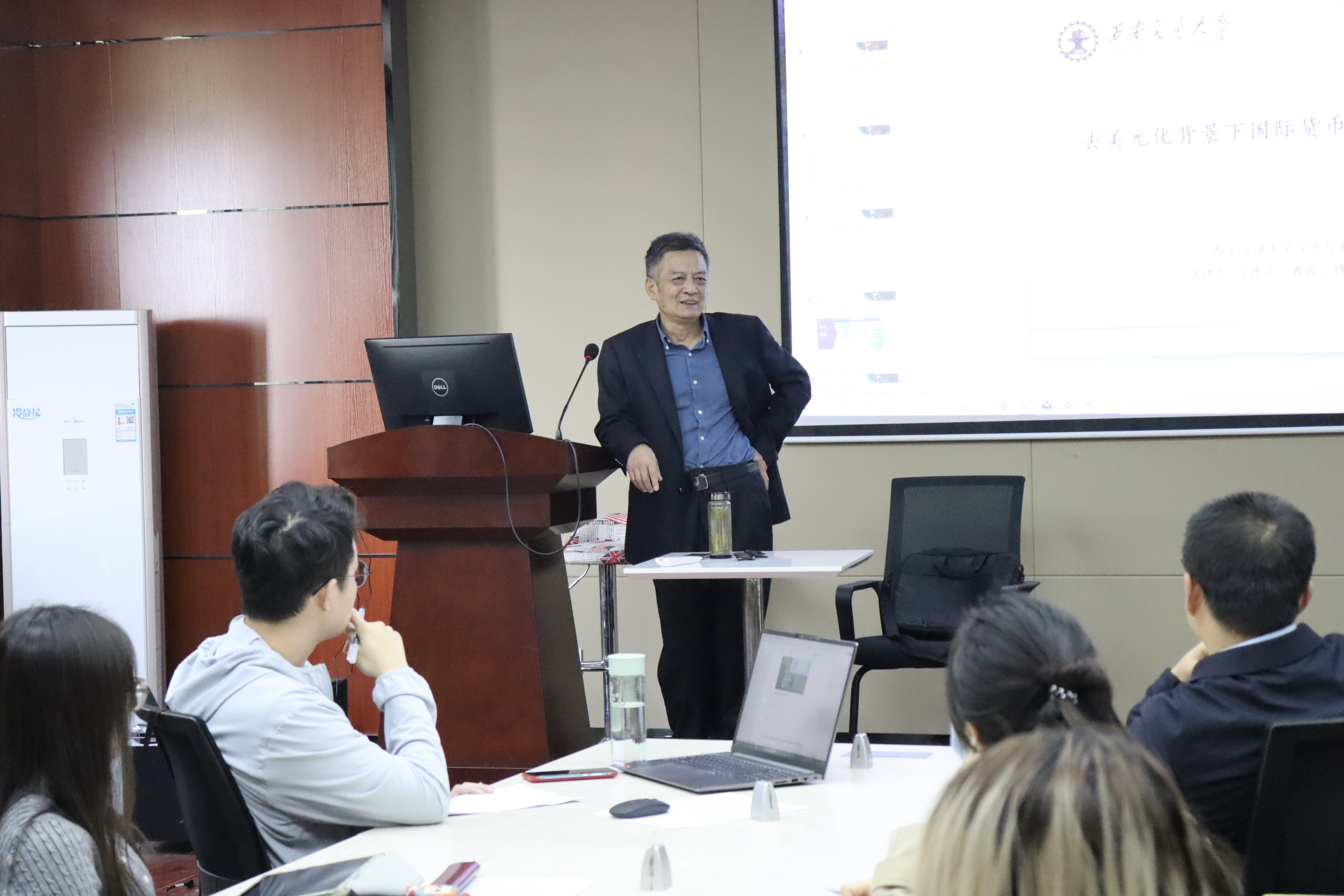 10月27日下午澳门新葡京娱乐城 邀请了西安交通大学经济与金融澳门新葡京娱乐城 教授、博士生导师崔建军教授在天平楼B100教室作题为《去美元背景下国际货币体系的未来》的讲座。本次讲座由澳门新葡京娱乐城 院长王胜利教授主持,澳门新葡京娱乐城 师生30余人参加了讲座。