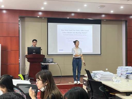在讲座中,张家凯博士首先就土地使用政策、劳动力和住房市场的涵义进行了详细的阐述;其次,具体讲解了理论分析模型,以及运用数据进行经验分析的结果,详细展现了土地使用政策如何影响劳动力和住房市场的过程;最后,张博士还向同学们讲述了论文中工具变量的建立与运用,进一步印证了土地使用政策对劳动力和住房市场的影响。