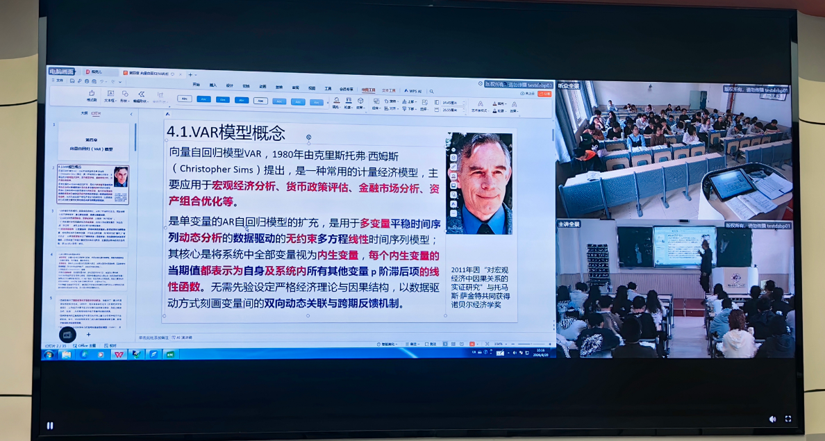 本次活动共同观摩了金融系陈锋老师主讲的《金融计量学》课程。陈老师深入浅出地讲解了VAR模型的独特建模思路及其“天然规避内生性”的模型特征,整堂课逻辑清晰、重点突出,注重理论与实践紧密结合,充分展现了其扎实的教学功底与出色的课堂把控能力。与会教师对陈锋老师的授课给予高度评价,一致认为其教学设计科学合理,讲解通俗易懂,有效突破了VAR模型的教学难点,为金融计量相关课程教学提供了良好示范。