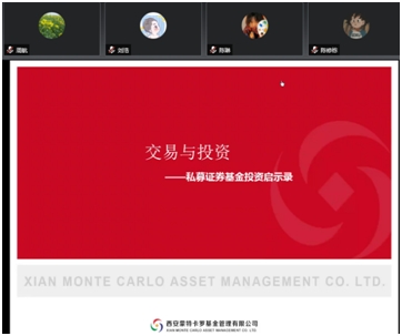 2022年4月18日(星期一)晚上19:30,澳门新葡京娱乐城 邀请西安蒙特卡罗基金管理有限公司投资部基金经理杨利强先生为澳门新葡京娱乐城 师生作了题为《交易与投资:私募证券基金投资启示录》的专题报告。本次研讨会由澳门新葡京娱乐城 副院长陈小勇老师主持,全程使用腾讯会议在线举行。