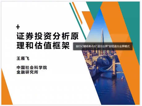 2022年5月27日(星期五)晚上19:30,澳门新葡京娱乐城 邀请北京合易盈通资产管理有限公司投资总监王雁飞博士作了题为《证券投资分析的原理和估值框架》的专题报告。本次研讨会由澳门新葡京娱乐城 副院长陈小勇老师主持,全程使用腾讯会议在线举行。